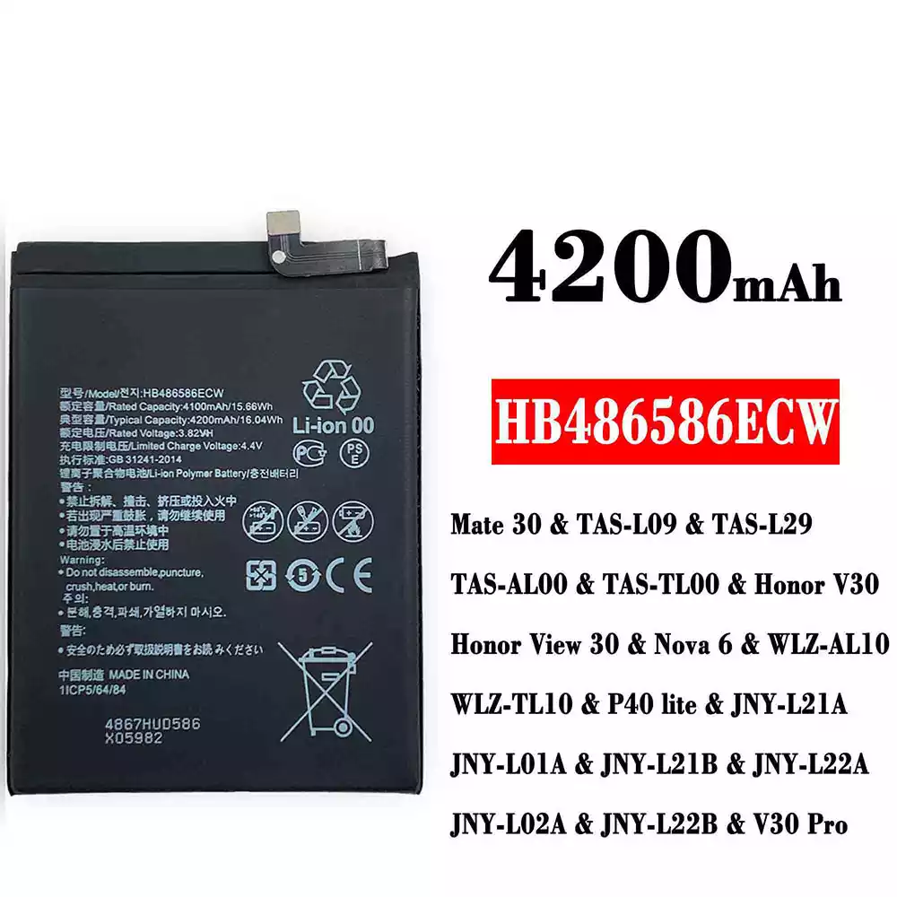 Akku HB486586ECW für HUAWEI Mate 30 / TAS-LO9 / TAS-L29 / TAS-AL00 / TAS-TLO0 / Honor V30 /Honor View 30 / Nova 6 / WLZ-AL10 / WLZ-TL10 / P40 lite / JNY-L21A / JNY-LO1A / JNY-L21B / JNY-L22A / JNY-LO2A / JNY-L22B / V30 Pro